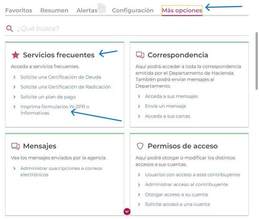 En SURI - Oprimir "Más Opciones" en su página principal, Buscar en "Servicios Frecuentes", lo encontrará en "Imprima formularios W-2PR o Informativas"